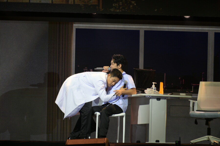 ด้านในฮอลล์ทันทีที่ไฟเวทีค่อย ๆ ดับลง Overture ดังขึ้นพาผู้ชมเข้าสู่โลกของเรื่องราว บทแรกจะเริ่มด้วยเพลง “เหมือนเคย” จาก หมอก้อง และ พยาบาล ได้ถ่ายทอดความอบอุ่นระหว่างแพทย์กับผู้ป่วย เสียงร้องที่ใสสะอาดกับภาพการแสดงบนเวทีเรียกเสียงปรบมือดังสนั่นตั้งแต่ต้น บรรยากาศยิ่งตราตรึงเมื่อ หมอนภ ก้าวขึ้นเวที ถ่ายทอดเพลง “อยากจะขอ” และ “กลับมา” ด้วยพลังเสียงอบอุ่นจับใจ เหมือนการส่งกำลังใจให้ผู้ป่วยและครอบครัวที่รอการเยียวยา ขณะที่ พยาบาลต๊งเหน่ง สะกดคนทั้งฮอลล์ด้วยเพลง “สักวันหนึ่ง”